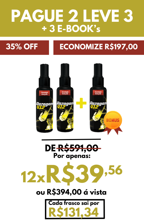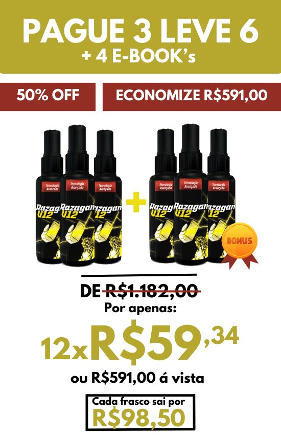 RAZAGAN V12 tem fórmula natural e não apresenta efeitos colaterais. O produto é indicado para o público masculino, que poderá ver seus resultados rapidamente, assim, aproveitar melhor seus benefícios.